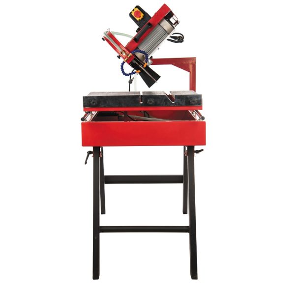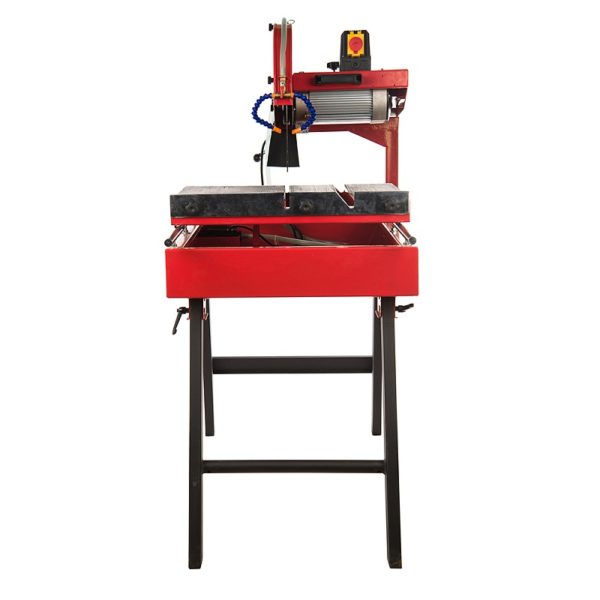 Конструкция резака имеет вертикальный ход (30-40 см) относительно заготовки, дабы продлить жизнедеятельность оснастки, на алмазные круги идет постоянная подача воды со встроенной водяной помпы. Заготовка располагается на подвижной каретке, которая направляется в сторону резака для разрезания заготовки. Режущую головку можно наклонять для диагонального реза под углом от 0 до 45°.